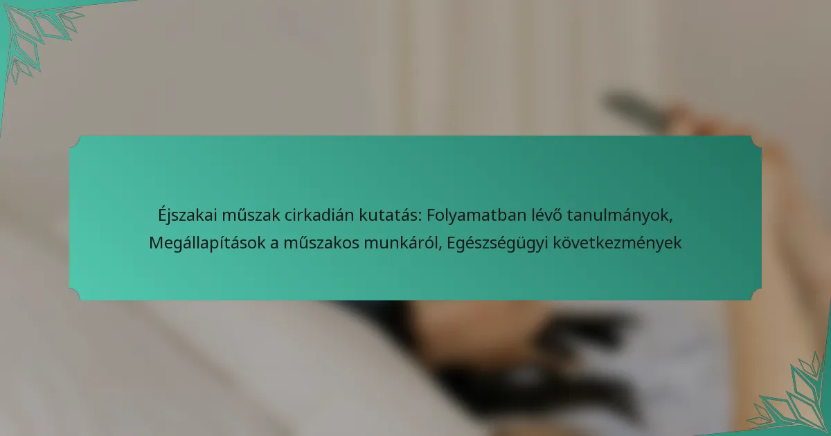 A legutóbbi éjszakai műszakos munkával kapcsolatos tanulmányok hangsúlyozzák annak mélyreható hatásait a cirkadián ritmusokra és az általános egészségre. A kutatások azt mutatják, hogy a test belső órája és a műszakos munka követelményei közötti eltérés alvászavarokhoz, hormonális egyensúlyhiányokhoz és krónikus egészségügyi állapotok fokozott kockázatához vezethet. A folyamatban lévő vizsgálatok célja, hogy jobban megértsék ezeket az egészségügyi következményeket, és hatékony kezelési stratégiákat dolgozzanak ki a műszakos munkavállalók számára.